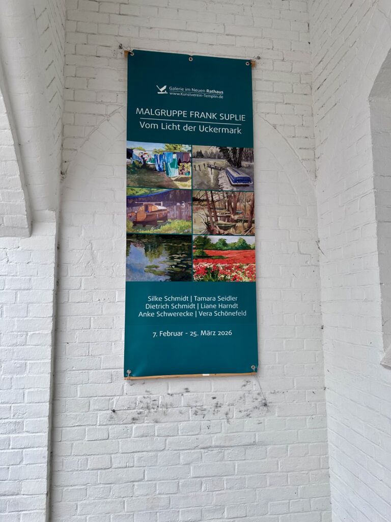 In der Galerie im Neuen Rathaus in Templin zeigt eine Malgruppe von Frank Suplie eine Ausstellung mit farbintensiven Landschaften, Stillleben und Interieurs, die das besondere Licht der Uckermark einfangen.